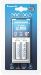 Зарядний пристрій Compact Charger+ Eneloop 2AA 2000 mAh. Вхідний струм-100-240В 50-60 Гц. Структура вхідного роз'єму - вбудований з перехідником. Зарядний струм (постійний) 3В - 220mA * 2 (AA); 1,5 В -80mA *2 (AAA). Контроль заряджання - таймер (відключення через 13 годин).
