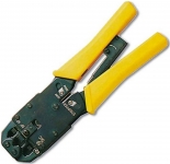 Модульний обтискний інструмент DIGITUS DN-94025 (Pass-Through) для конекторів RJ45 (8P8C). Поєднує обтиск, обрізання виступаючих жил та зняття ізоляції в одному корпусі. Сталева конструкція, ергономічні руків’я — швидкий, акуратний і надійний монтаж патч-кордів Cat5e–Cat6A.