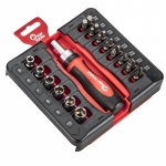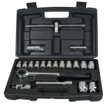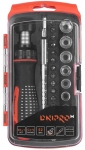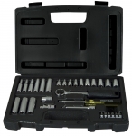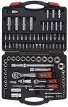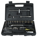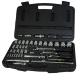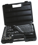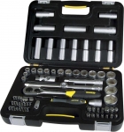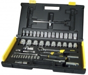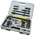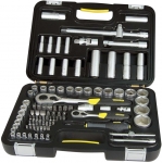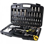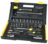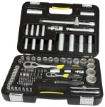 Набір інструменту TOPEX, до складу входять 56 предметів, упакованих в зручний пластмасовий кейс. Всі предмети відрізняються високою якістю виконання. У набір входить основний інструмент, такий як тріскачки 1/2", викрутки, шарнірно-губцевий інструмент, молоток вагою 300 г, комбіновані ключі, змінні головки або наконечники. Набір призначений для універсального застосування, для дрібних монтажних робіт, ремонту обладнання і автомобілів , а також інших робіт в побуті і в гаражі кожного домашнього майстра.