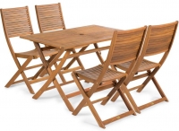 Даний набір для кемпінгу складається зі складаного стола та чотирьох табуреток. Завдяки своїй конструкції набір складається в компактну валізу з ручкою для перенесення. Можна використовувати як спорядження для автобудинку, для походу на природу, сезонних заходів, так і для зручного способу перекусити в саду, на дачі, на риболовлі або полюванні.
