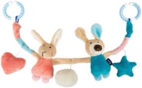 М’якенька іграшка бельгійського виробника Nattou додасть інтер’єру дитячої кімнати затишного, комфортного вигляду. Напрочуд м’який виріб у формі спіралі легко кріпиться до дитячого ліжка, коляски або будь-якої планки. Крім того, іграшку можна прикріпити в автомобілі, милі тваринки розважатимуть дитину в дорозі, не дадуть занудьгувати. Виріб блакитного кольору, розміром 18 х 29 см, виготовлений із поліестеру. Іграшку легко прати. Підходить для дітей із народження.