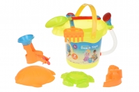 Набір для гри піску містить відерце і тарілку для гри у фрізбі. Окрім цих деталей, у наборі є інші: інструменти та формочки. Всі елементи виготовлені з нетоксичного, абсолютно безпечного пластику. Розмір відерця: 12х15х19 см. Всередину поміщаються всі деталі, а тарілку можна використовувати як своєрідну кришку. Відерце з ручкою. Ігровий набір для дітей від трьох років.