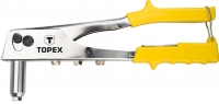 Клепальник TOPEX до алюмінієвих клепок діаметром 2,4, 3,2, 4,0, 4,8 мм. Добротні сталеві горішнє руків’я та корпус клепальника. Завдяки видовженій передній частині голівки спрощується клепання у важкодоступних місцях. Зручні ручки мають блокувальне кільце, що спрощує зберігання. Марка TOPEX адресована майстрам, які займаються дрібним ремонтом.