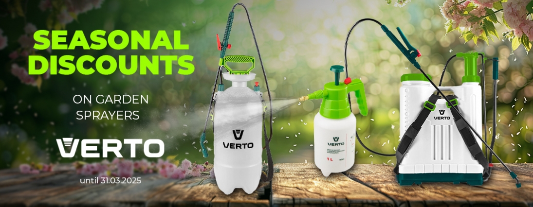 Pressure sprayer 1l 15G501 VERTO is a practical hand sprayer with a capacity of 1 litre. An extremely useful item in the care of plants at home, on the balcony, in the garden or in the greenhouse. For spraying water or fertilizers. Working pressures in the range: 2 – 2.5 bar.