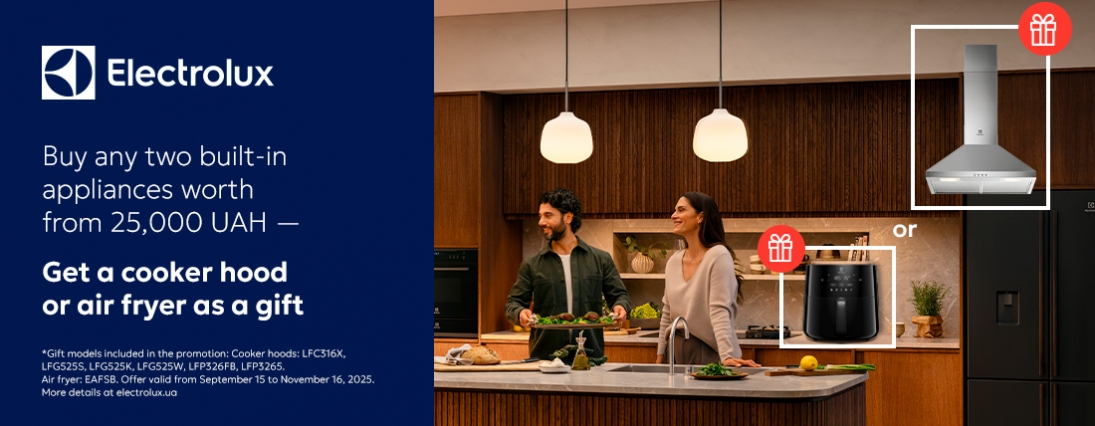 Купуйте дві одиниці вбудованої техніки на суму від 25 000 грн й отримуйте одну з витяжок або мультипіч як подарунок.