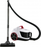 The Gorenje TWIST II bagless vacuum cleaner with an 850 W input power is designed for dry cleaning and collects dust in a 3.3-liter plastic container. Its 140 W suction power and 21 l/s airflow support steady cleaning performance on floors and carpets. The HEPA filter captures fine particles to maintain cleaner exhaust air. The telescopic tube and pivoting handle increase maneuverability. Rubber wheels and a well-balanced body help protect surfaces during movement.
