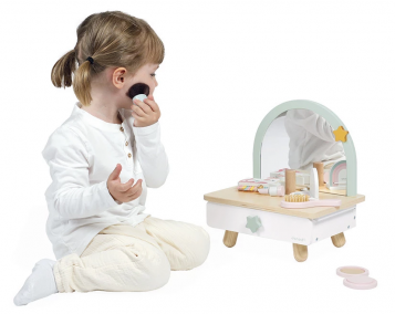 Ideal for children aged 3 and over, this little wooden dressing table is the perfect imitation toy to give to a unicorn fan! Supplied with 7 accessories, it lets you imitate the grown-ups by getting ready in front of the mirror, or pamper your favorite stuffed animals and dolls by playing hairdresser's apprentice.