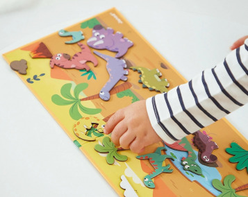 Jurassic animals are within easy reach! This magnetic backdrop opens the doors to a distant dinosaur-populated era for children aged 3 years and up. This magnetic game consists of an illustrated backdrop and 30 dinosaur-themed magnets.