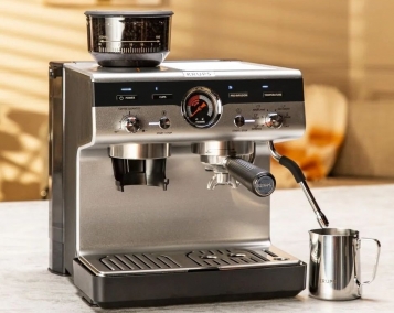 Krups пропонує ріжкову кавоварку Precision XP804T10 для тих, хто цінує справжній смак еспресо, свіжозмелену каву та зручність керування пристроєм у домашніх умовах.
