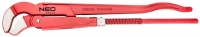 The Stillson NEO 02-417 pipe wrench, 350 mm long, is designed for plumbing and locksmithing work. Made of durable forged cast iron, it has serrated jaws with grooves for a secure grip and a worm adjustment mechanism.