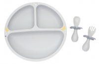 Oribel feeding set plate with fork and spoon. Starting to eat adult food is an exciting and important stage in a child's development, opening up a new world of flavors to your baby and forming the foundation for growing strong and healthy. The Oribel feeding set is designed to make mealtimes easy and enjoyable.