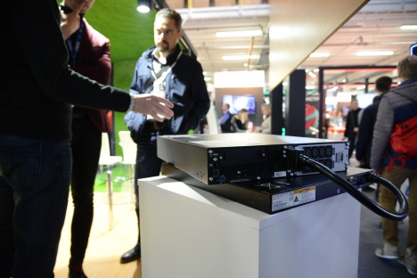 На стенді Eaton представлено ДБЖ кількох лінійок для домашнього та офісного використання. Головна новинка – Eaton 9SX ДБЖ із лінійки онлайн-пристроїв, що є послідовником легендарного Powerware 9130.