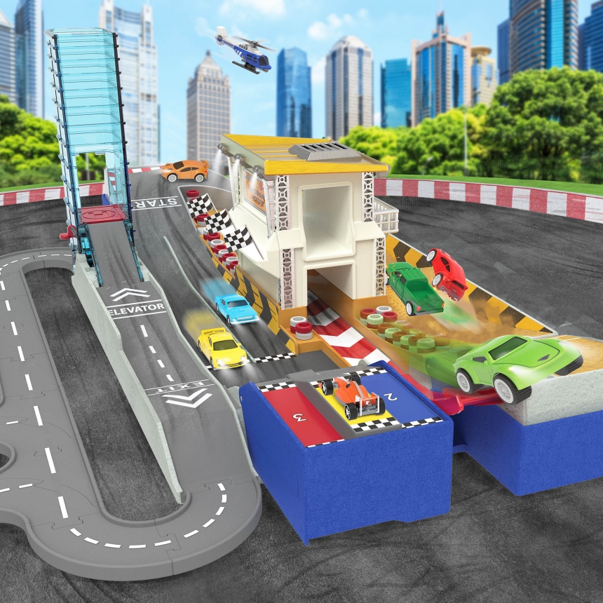 Із POCKET SERIES «Гоночна траса» бренда DRIVEN можна зменшити масштаб трюкового стрибка та відвідати автосалон для ремонту – усе в одному ігровому наборі! Ба більше, іграшка трансформується з автомагазину на гоночний трек лише за лічені хвилини. Випробувати всі чудові функції можна за допомогою двох іграшкових машинок: спершу зупинка на АЗС, далі за планом – мийка. Піднявшись на ліфті й натиснувши кнопку на гоночній трасі, можна спостерігати захопливе видовище – іграшкова машина мчить уперед! Також у комплекті є 73 доріжки, що легко з’єднуються, і чотири дорожні знаки для створення власної «павутини» доріг. На гоночній трасі DRIVEN чекає багато цікавих відкриттів!