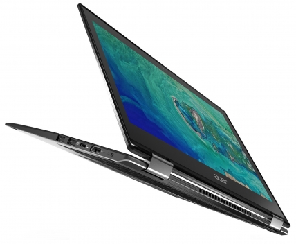 У металевому корпусі завтовшки 17,9 мм виробник вмістив потужні комплектуючі: новітній процесор Intel 8-го покоління, що забезпечує швидке завантаження додатків та роботу над кількома завданнями одночасно без затримок; потужну відеокарту GeForce GTX 1050 у флагманській моделі та сенсорний IPS-екран, що характеризується роздільною здатністю Full HD і разом із технологією Acer Color Intelligence забезпечує яскравість і чіткість зображення. В екран вбудовано фільтр Acer BluelightShield, який регулює інтенсивність випромінювання синього кольору, знижуючи навантаження на очі. Також пристрій обладнано електронним пером Acer Active Stylus — потужним інструментом для малювання, створення схем чи нотаток на екрані завдяки технології Windows Ink.