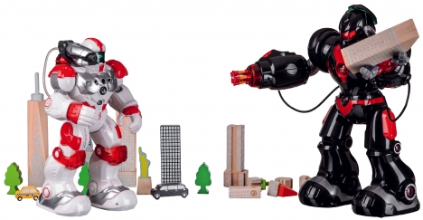 Набір Робо-футбол Same Toy - це готовий комплект для захоплюючого матчу 1 на 1. В набір входять два роботи футболіста, поле, ворота, два м'ячі і два пульта управління роботами. Роботи здатні їздити в різних напрямках, бити м'яч, співати і танцювати.
