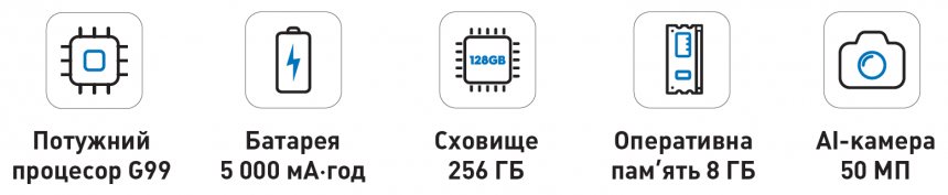 CAMON 30 працює на базі процесора MediaTek Helio G99 Ultimate із численними інтелектуальними функціями, який не лише відкриває неймовірні можливості для оброблення зображень, а й поліпшує відтворення відео так, що від кожного кадру перехоплює подих. Смартфон має 256 ГБ вбудованої пам’яті та 8 ГБ оперативної, яку можна розширити до 16 ГБ, додавши в налаштуваннях 8 ГБ віртуальної пам’яті.