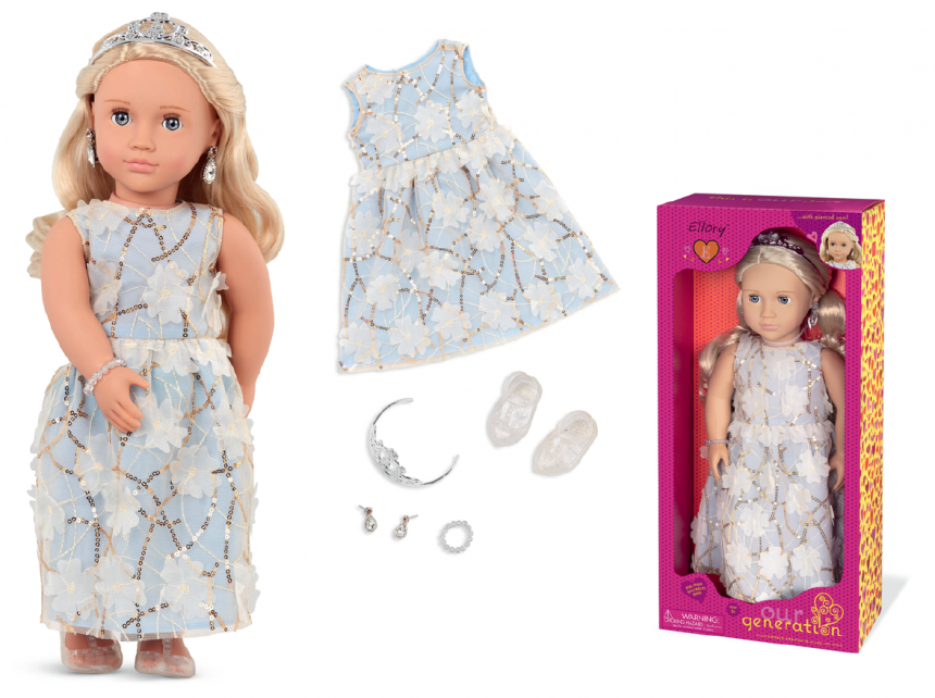 Святкуйте незабутні миті разом з чарівною лялькою Еллорі від Our Generation! Ця стильна 46-сантиметрова подружка готова до найяскравіших вечірок. Її яскраво-блакитні очі відкриваються та закриваються, а довге світле волосся легко розчісується та дозволяє створювати різноманітні зачіски – від хвостиків до елегантних кіс.