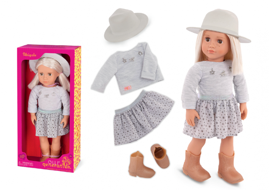 Вирушайте назустріч новим пригодам разом із лялькою Our Generation Ебігейл! Ця стильна 46-сантиметрова лялька створена для шанувальників моди та верхової їзди. Вона має реалістичні риси обличчя, чарівні веснянки та красиві карі очі, які відкриваються і закриваються. А довге платиново - біляве волосся можна розчісувати та укладати в різні зачіски.