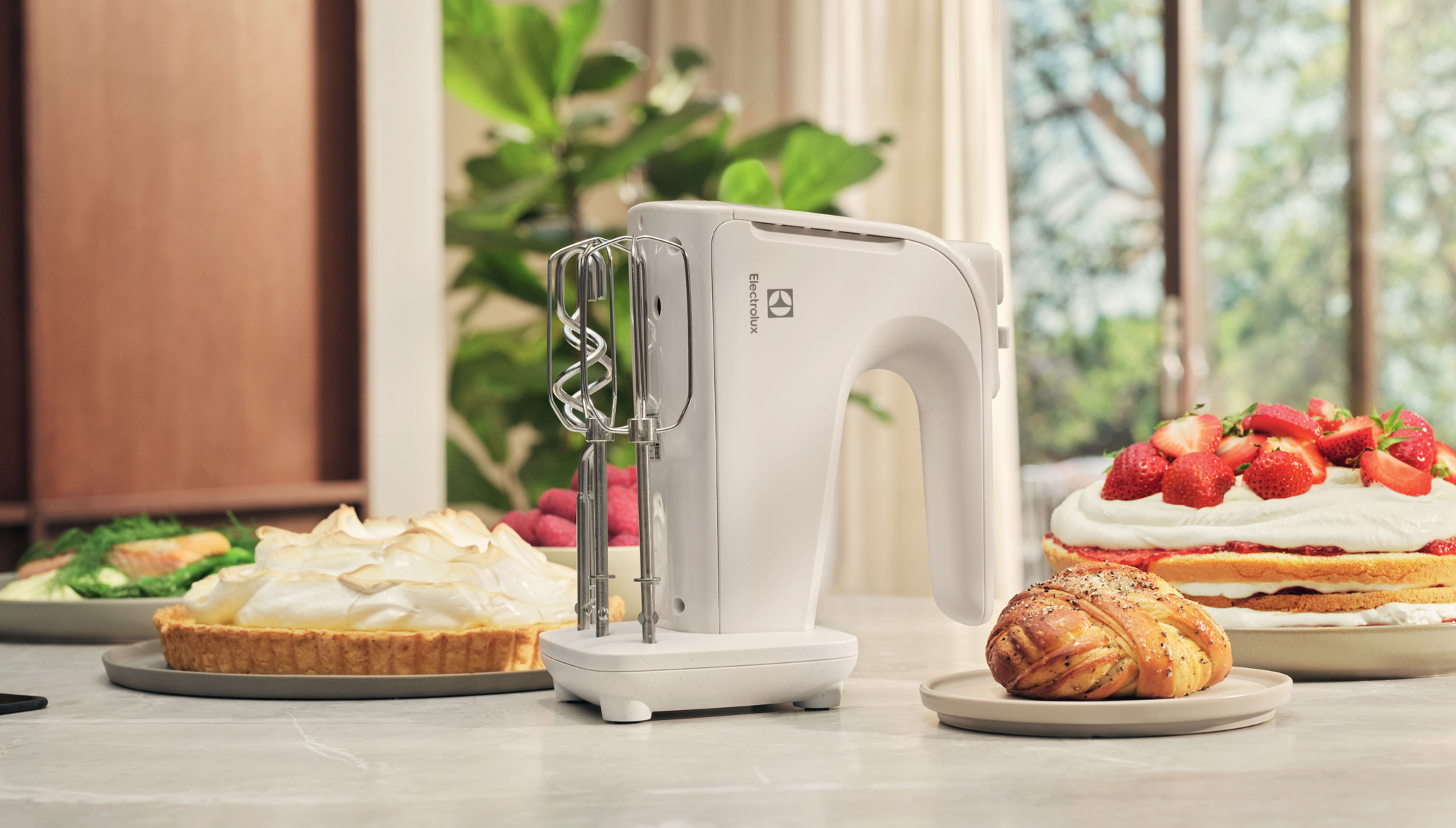Швидко готуйте улюблені страви за допомогою міксера Electrolux 300 Hand Mixer. Однаково ефективний для традиційних і рослинних продуктів, незмінні результати щоразу. Він виготовлений із переробленого пластику та має компактну підставку для аксесуарів.