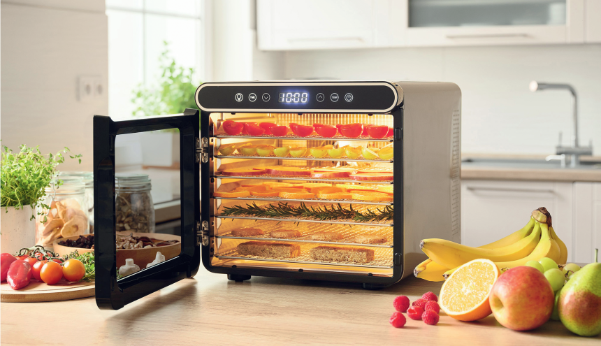 Завдяки цьому кухонному пристрою можна швидко та дбайливо сушити фрукти, овочі, трави, шкірку, насіння, гриби, квіти та багато інших продуктів. Вони втрачатимуть лише воду, але не корисні речовини. Принаймні, як порівняти із сушінням у духовці чи на сонці.