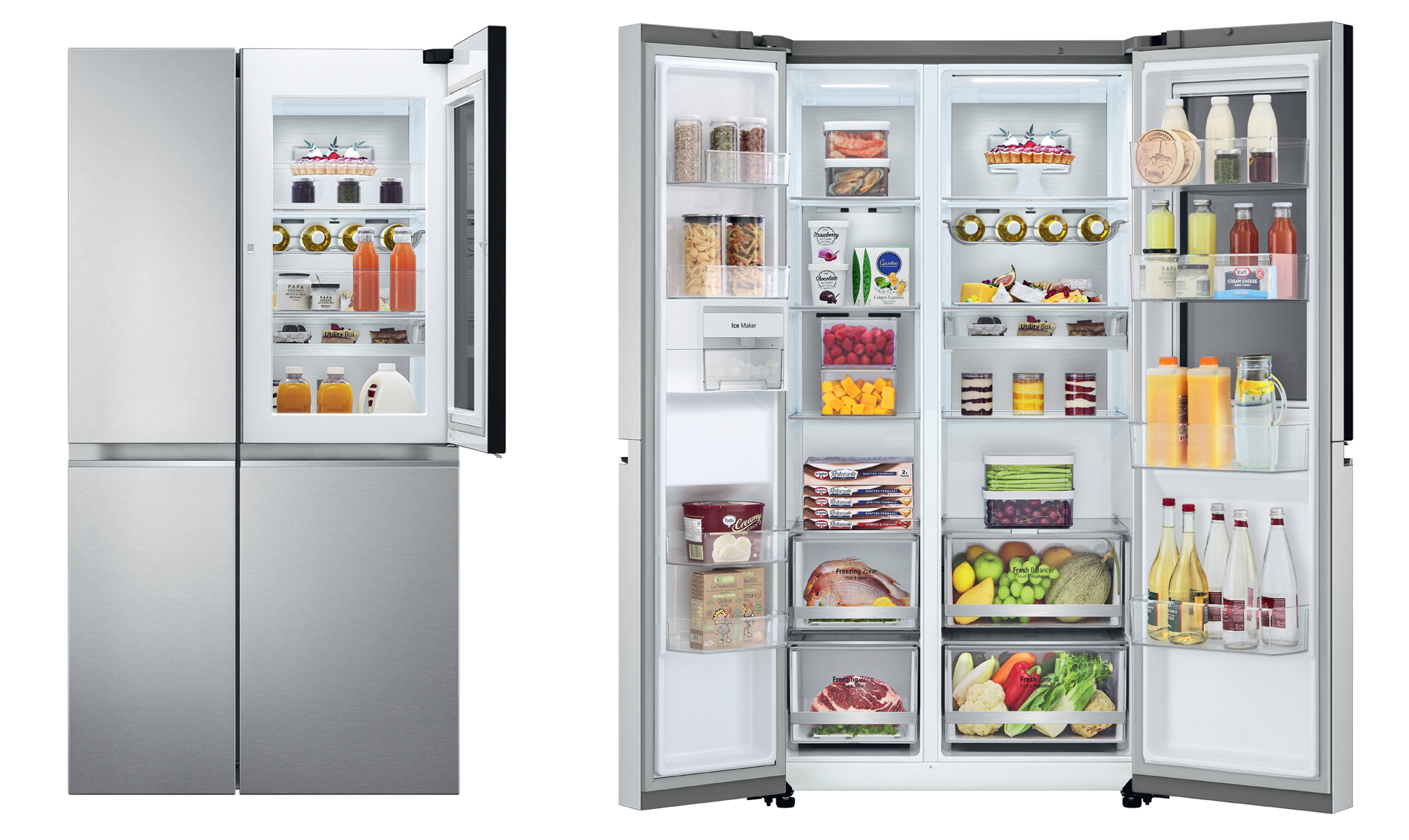 Із новою революційною системою InstaView Door-in-Door більше не потрібно відчиняти холодильник, щоби зазирнути всередину, адже побачити вміст можна, просто постукавши двічі по скляних дверцятах. Ще більше простору, функціональності та свіжості разом із новою лінійкою холодильників LG.