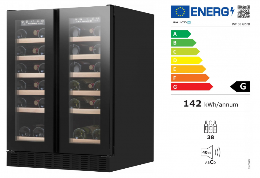 - Подвійна температурна зона. Однією з головних переваг PW38GDFB є наявність двох температурних зон, що дає змогу одночасно зберігати червоні й білі вина за різних умов – для кожного виду можна встановити оптимальну температуру в межах від 5 °C до 18 °C.
