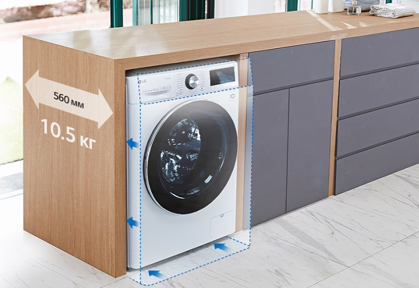 • Розумне використання простору із вузькими моделями. Лише +2 см до глибини барабана збільшує обсяг завантаження, але зберігає місце й забезпечує зручність користування пристроями з ефективним функціоналом.