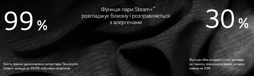 Розумні технології дають змогу не лише освіжити одяг, але й усунути до 99,99 % вірусів, бактерій та алергенів. Оброблення парою, яке передбачено у програмах «Гіпоалергенне прання» та «Одяг малюка», гарантує максимальну гігієнічність, що особливо важливо для немовлят і людей, які страждають на алергію.