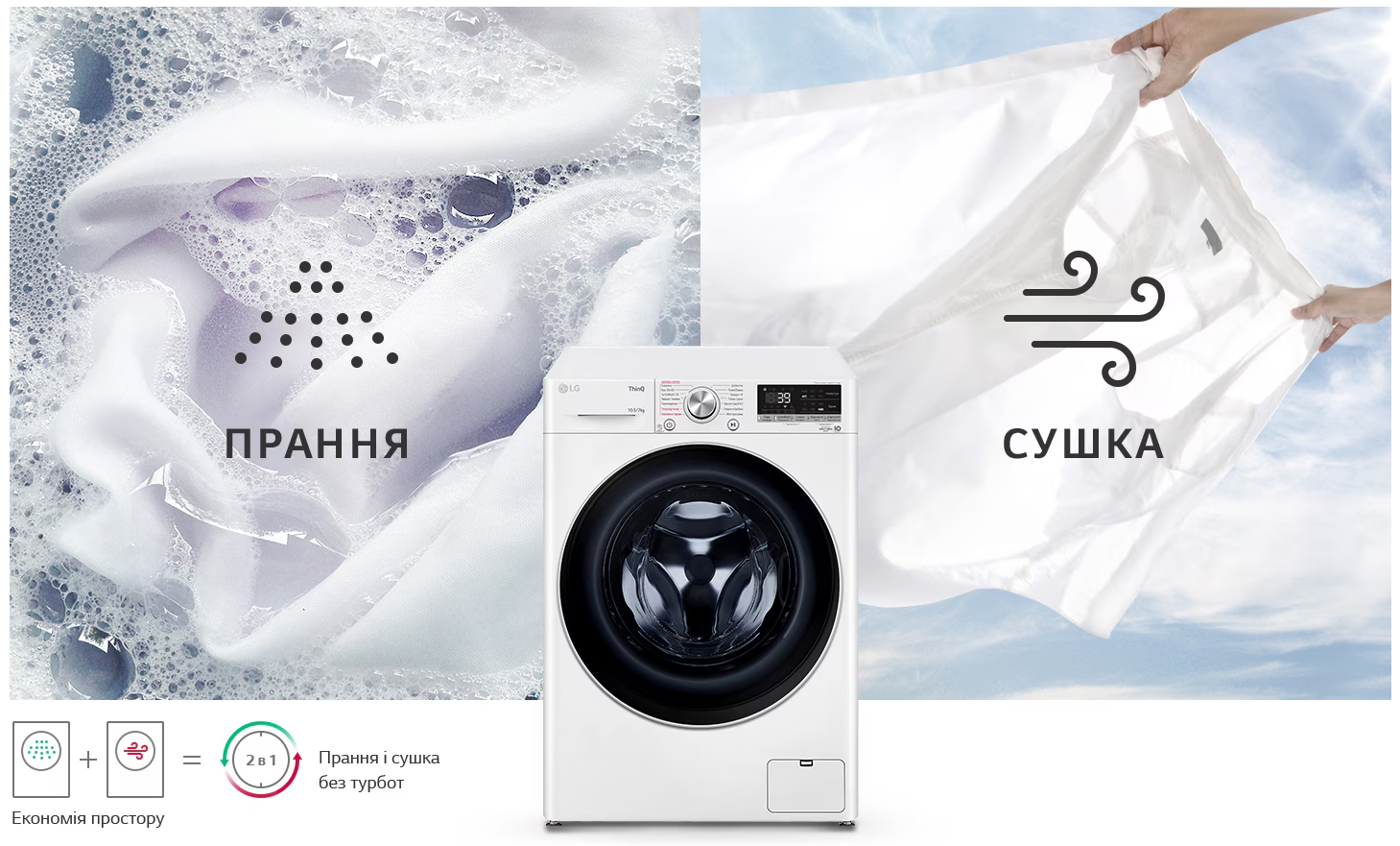 Пральна машина з технологією AI DD і функцією сушки, 10,5/7 кг. В пам’ять пральної машини закладена база даних з 20 000 можливих поєднань тканин. Аналіз цих даних дозволяє підбирати свій алгоритм прання для кожного типу білизни. Як результат - висока якість прання та на 18% менше пошкоджень тканини.