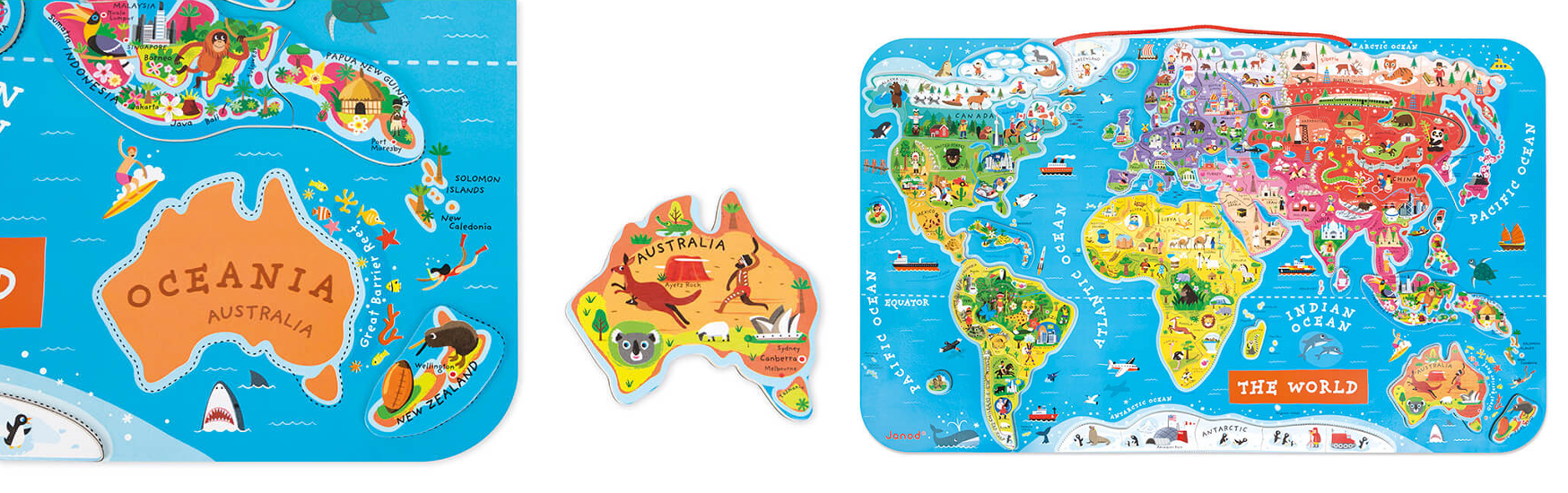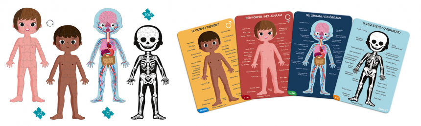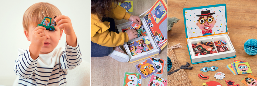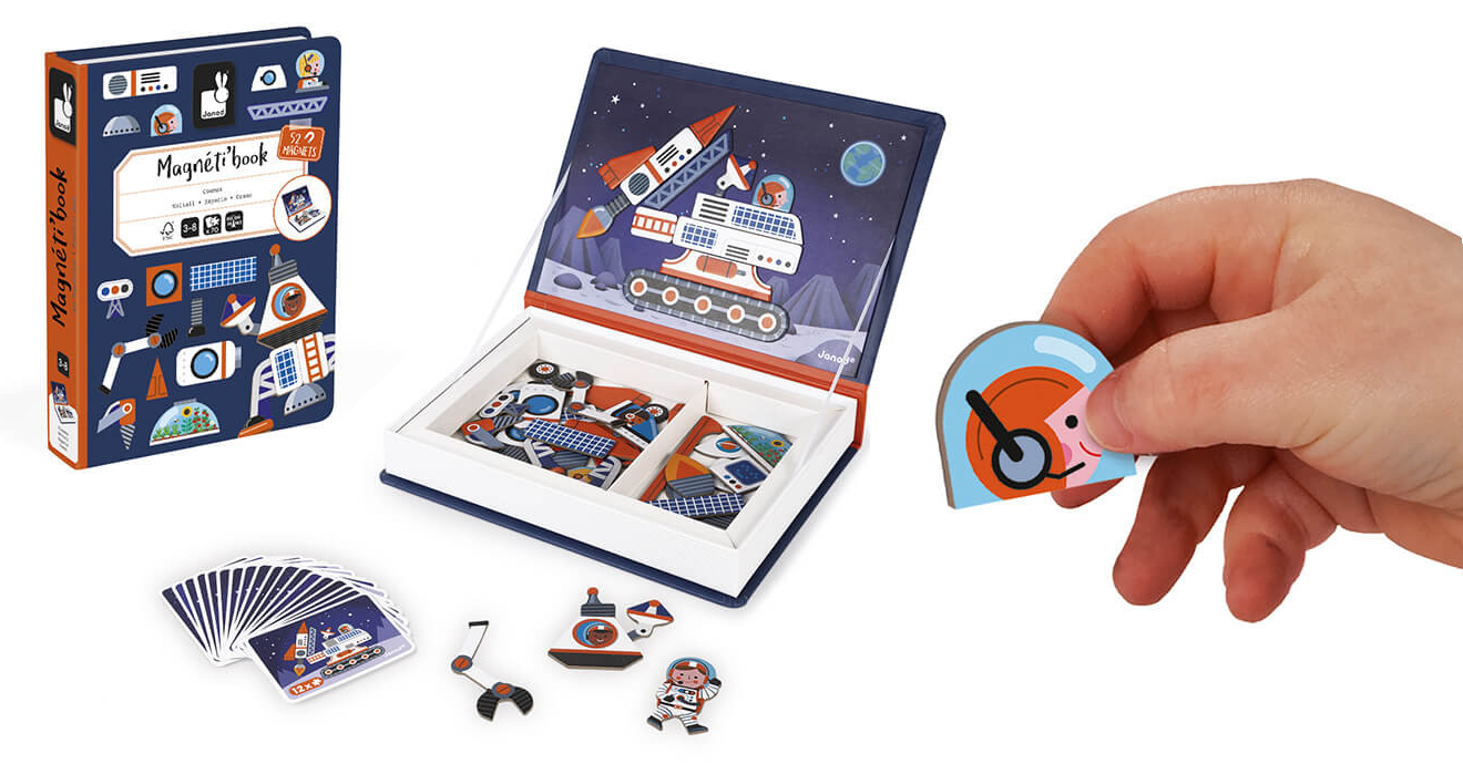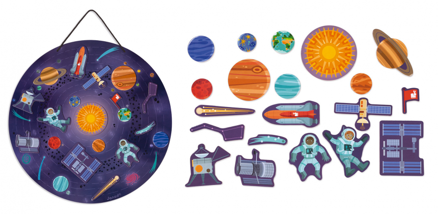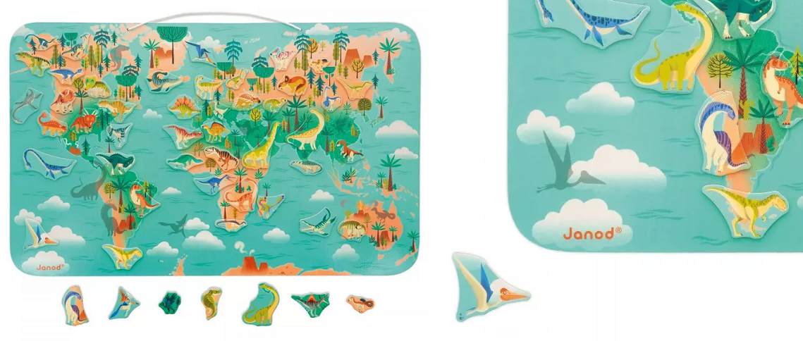 Janod пропонує розвивальні ігри для дітей, які полюбляють пізнавати світ. За допомогою яскравих магнітних карт і пазлів діти вирушать до захопливих подорожей космосом, у доісторичні часи, досліджуватимуть різні країни світу та відкриють таємниці людського тіла.