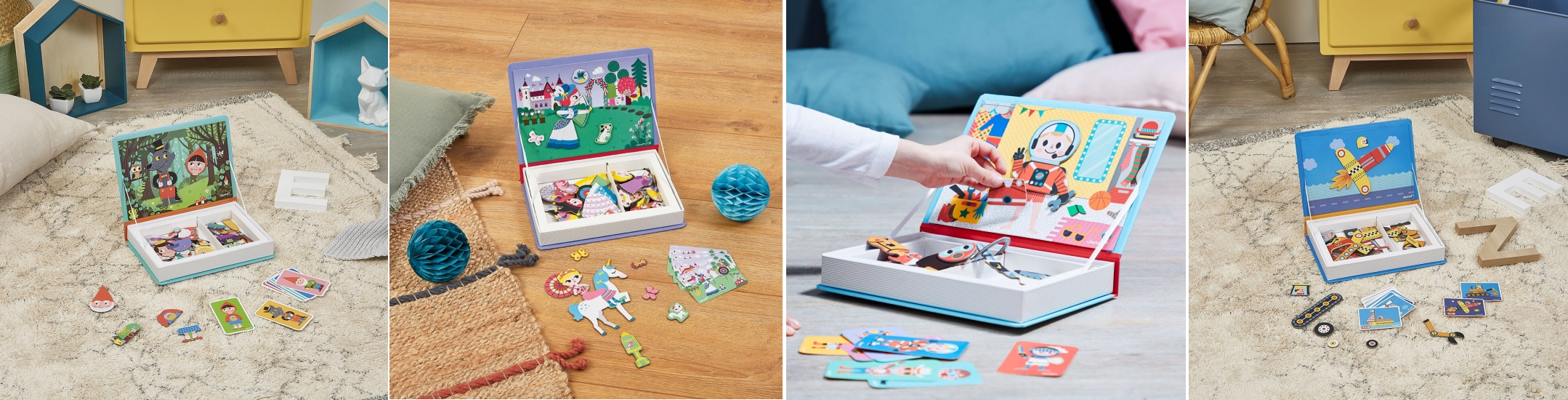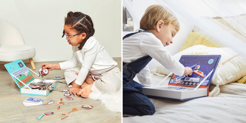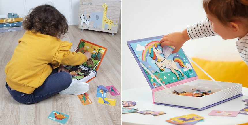 Із магнітними книжками Janod діти зануряться до світу знань – набори допоможуть вивчити сезони, час, форми, англійську абетку та багато іншого в цікавій ігровій формі.