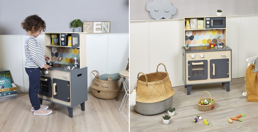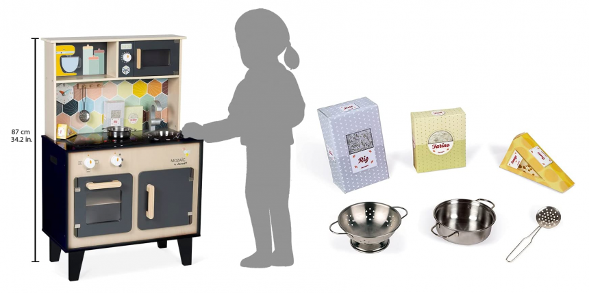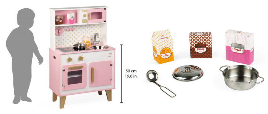 Ця чудова дерев’яна кухня, яку створено французькими майстрами, стане справжнім куточком кулінарних мрій. Яскравий дизайн і сучасні елементи підкорять серце кожної дитини. Ігровий набір надихатиме на створення унікальних рецептів святкових смаколиків.
