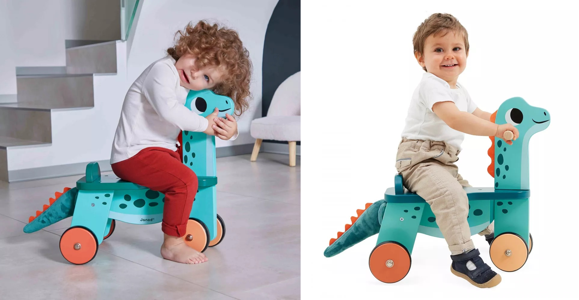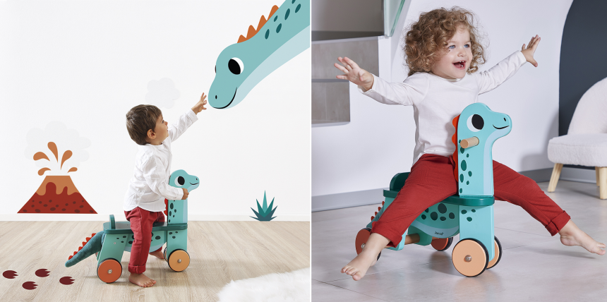 Кожен малюк мріє про власного динозавра: Janod «Діно Портозавр» – яскравий і міцний дерев’яний толокар у формі брахіозавра, який стане не лише розвагою, а й допоможе дитині розвивати координацію рухів і рівновагу. Завдяки стійкій конструкції, комфортному сидінню зі спинкою і боковим руків’ям толокар безпечний і зручний щодо використання. Яскравий дизайн і м’який хвостик поліпшуватимуть настрій, роблячи катання на толокарі ще захопливішим!