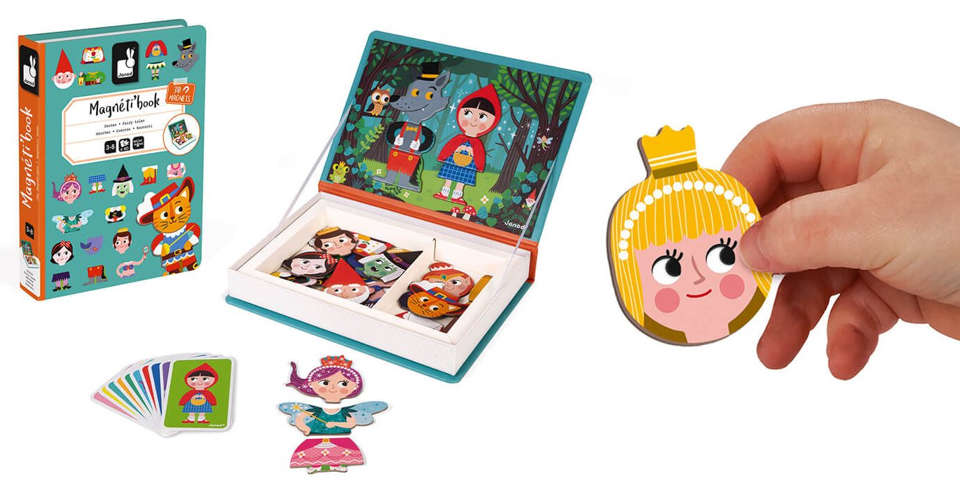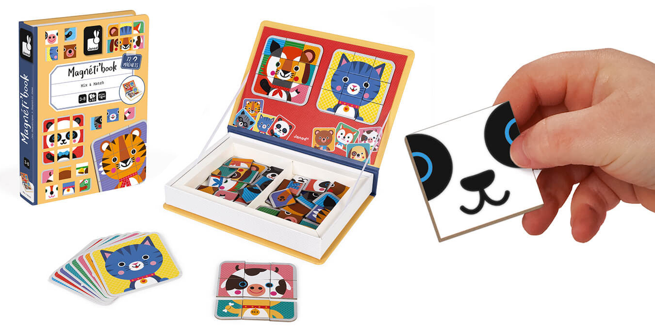 Уявіть книгу, яка не просто розповідає історії, а й дає змогу їх створювати. Під обкладинкою кожної магнітної книги Janod – цікава головоломка для дітей віком від 3 до 8 років. У наборі є картки із завданнями та магнітні елементи із зображенням цифр, букв або частинок повноцінних картинок тварин, людей, транспорту тощо.