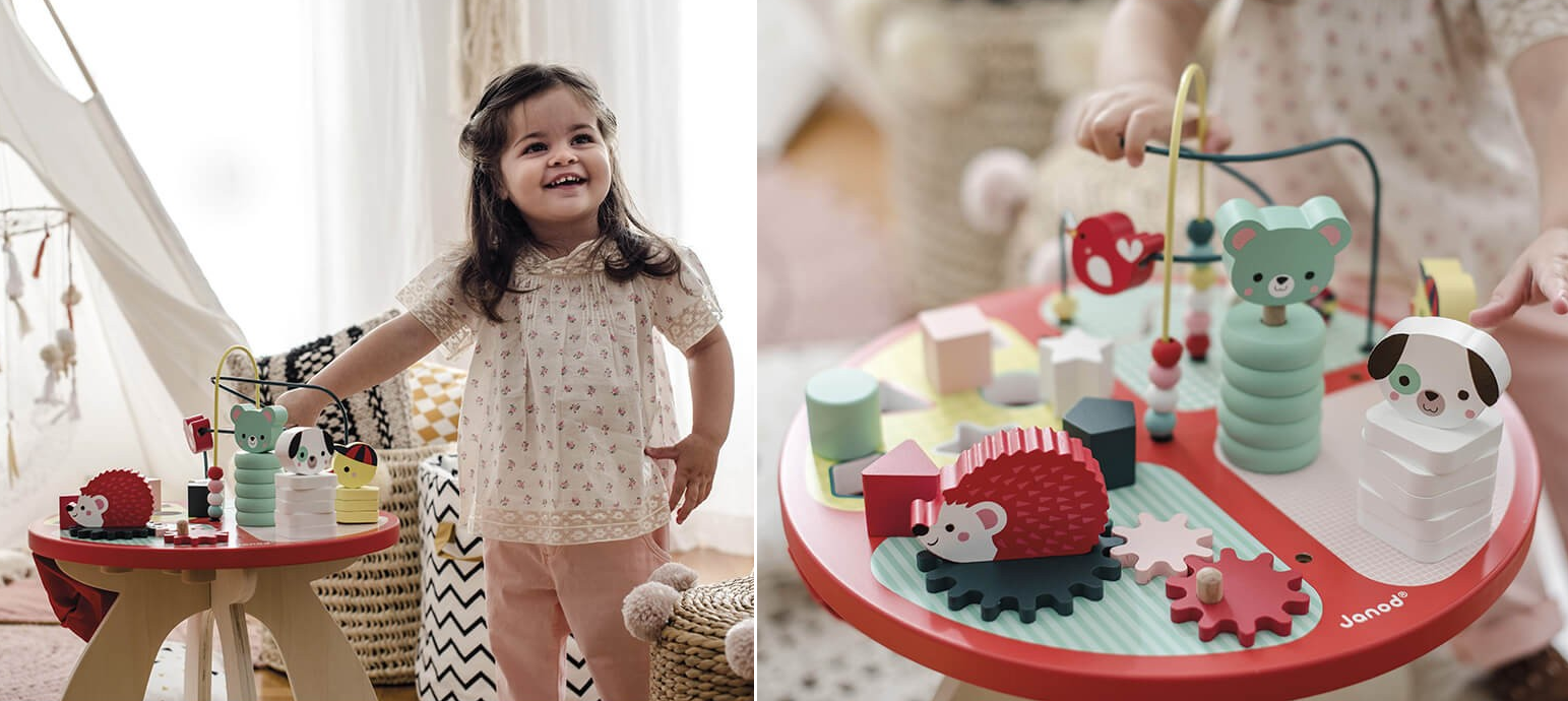 Багатофункціональні розвивальні столики та ігрові центри Janod сповнені цікавих завдань, які допоможуть малюкам пізнавати кольори, форми, розвивати логіку, моторику, координацію рухів та уяву.