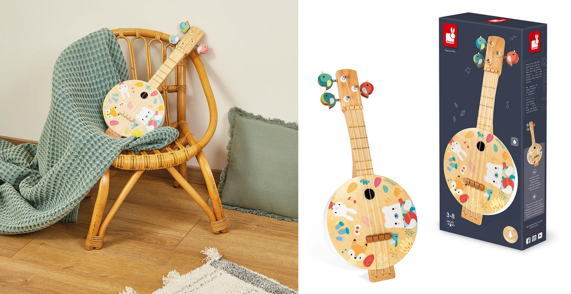 Дерев’яні музичні інструменти Janod створено з любов’ю до музики та природи. Кожен інструмент – це унікальний виріб, який дарує радість і розвиває музикальний слух із дитинства. Нехай музика сповнить життя дитини радістю і веселощами!