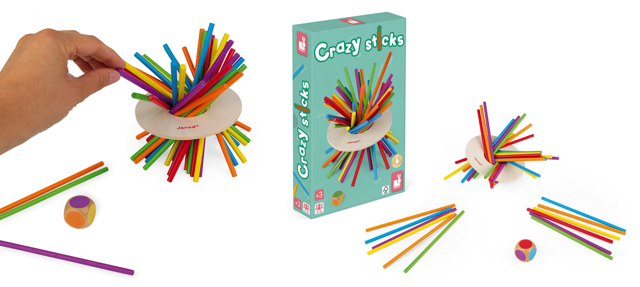 Janod «Божевільні палички» – гра-випробування на спритність, логіку та терпіння. Основне завдання – зуміти дістати палички з дерев’яного диска так, щоби він не опустився донизу. Хто з гравців зможе зберегти баланс і стати переможцем цього захопливого змагання?