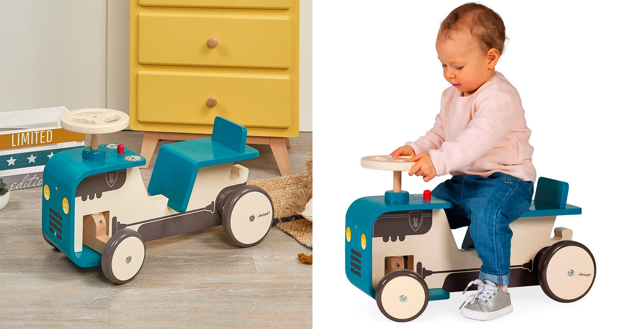 Запросіть малюка до захопливої мандрівки на дерев’яному тракторі Janod! Цей яскравий толокар не тільки розважить дитину, але й розвиватиме дрібну моторику, координацію рухів та уяву. Звуковий сигнал, якій імітує гудок трактора, додасть грі реалістичності, а міцні колеса забезпечать плавний хід. На толокарі «Трактор» дитина відчує себе справжнім фермером!