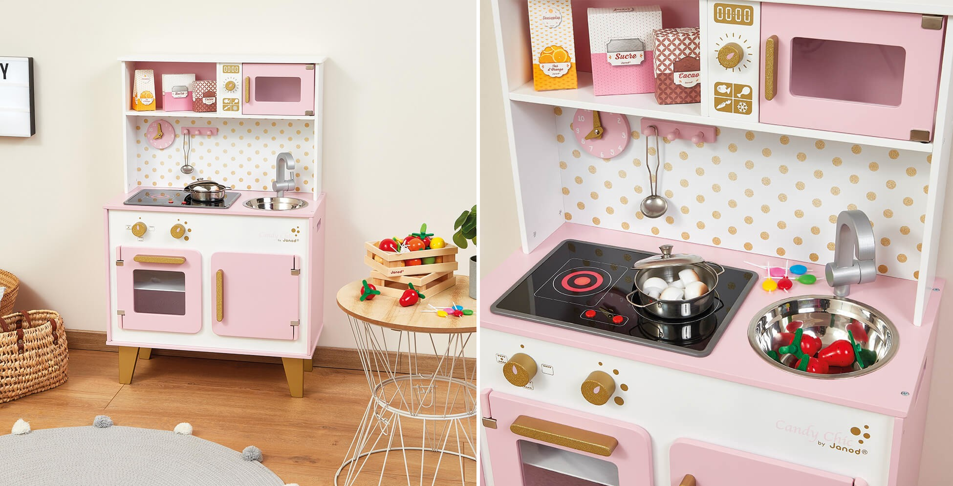 Аби дитина зростала творчою та самостійною, Janod пропонує ігрові набори кухонь. Яскравий дизайн, натуральні матеріали та функціональність роблять їх незамінними для розвитку дитини.