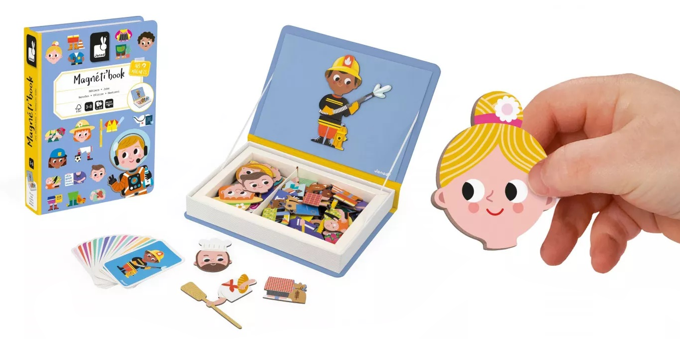 Хлопчики цікавляться космічними кораблями, дівчатка – світом принцес, а хтось захоплюється спортом чи мріє стати пожежником? Магнітні книги Janod – це світ можливостей для розвитку уяви та творчості, де кожен знайде щось для себе!