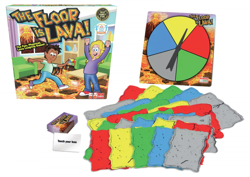 "Лавова підлога!" - це настільна гра для всієї родини, яка сприяє фізичній активності, розвитку уяви та захоплюючим веселощам для дітей і дорослих.