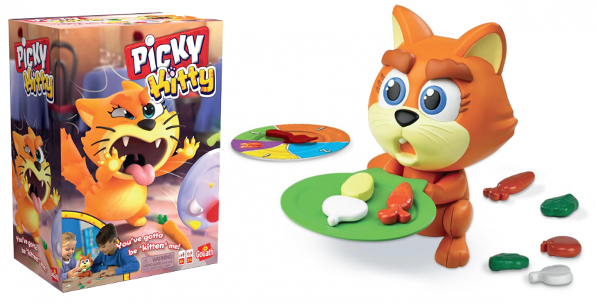 Весела гра для всієї родини. Кому з гравців вдасться нагодувати кошеня? Цей пухнастий гурман любить добре попоїсти, але йому не смакують овочі! Крутіть стрілку, годуйте котика і стежте за його реакцією. Тільки не перестарайтеся, інакше він може перевернути тарілку! Легкі правила та несподівані повороти зроблять гру незабутньою.