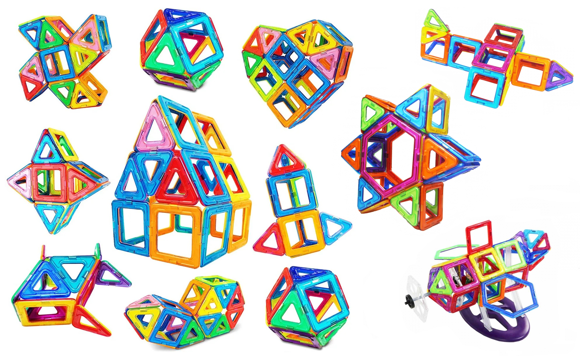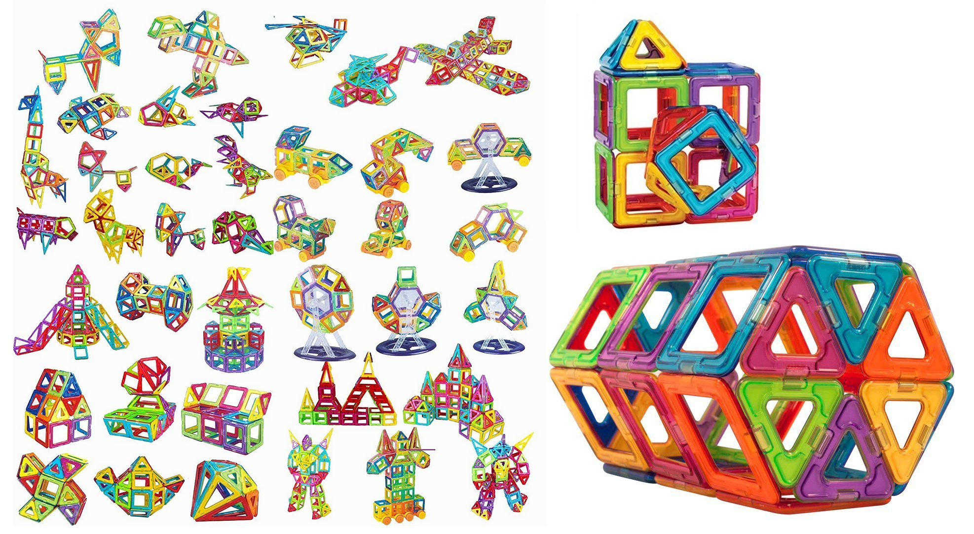 Найбільший набір, який пропонує 118 деталей для справжніх архітекторів і винахідників. Трикутники, квадрати, шестикутники, трапеції, ромби, а також функціональні елементи, як-от основи для вітряків та оглядових коліс, основи для автомобілів, деталі з літерами для складання слів – усі елементи мають магнітні кріплення, які не потребують дотримання полярності, тому їх можна кріпити між собою будь-яким боком. У наборі також передбачено інструкції для складання, які допоможуть дитині опанувати базові конструкції та створити свої власні.