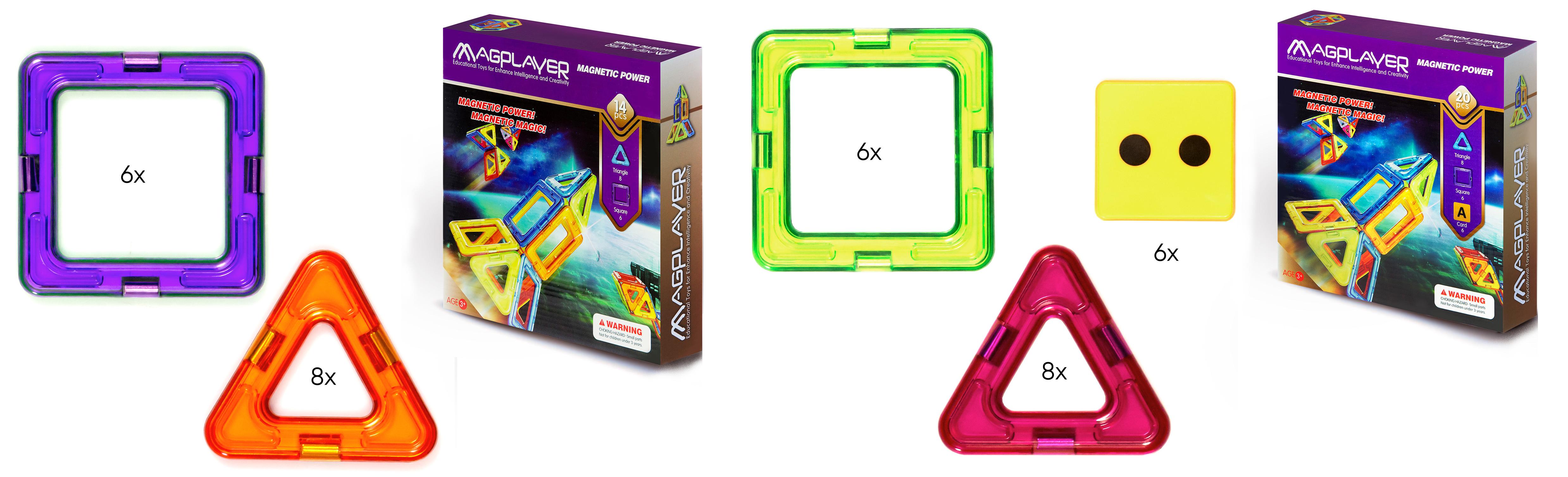 Конструктори Magplayer «Додатковий набір», 6 і 8 елементів