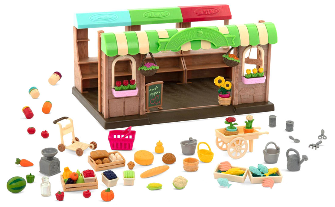 Ігровий набір «Фермерський ринок» стане цікавим і корисним доповненням до іграшок Li'l Woodzeez. На ринку фермерів завжди все свіже й корисне. Комплект складається із 68 предметів.