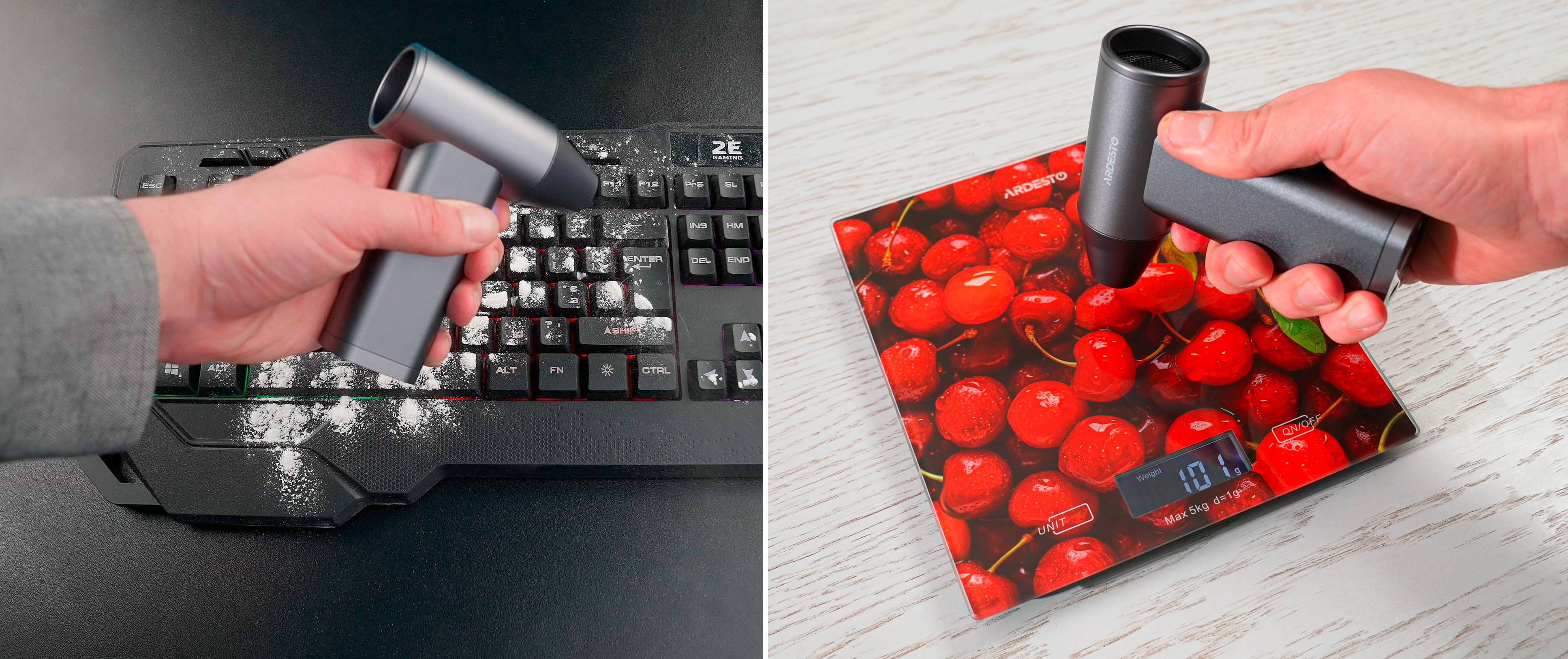 Його зручно тримати в руці або розміщувати на столі, а вбудований ліхтарик забезпечує комфорт за використання в темний час доби. Акумулятор ємністю 1 100 мА·год гарантує до 45 хвилин роботи залежно від вибраного режиму швидкості. Крім того, модель FN-HY-110Turbo згодиться для видалення пилу та охолодження техніки.