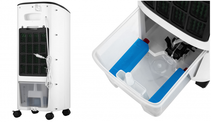 Ця модель також згодиться для приміщень площею до 15 м2. Попри компактний розмір, вона вирізняється високою продуктивністю: 430 м2/год за інтенсивності випаровування 1,5 л/год. Резервуар об’ємом 7 л гарантує доволі тривалу роботу без частого доливання води. Користуватися охолоджувачем зручно завдяки вбудованому дисплею, електронному керуванню, таймеру й пульту дистанційного керування. Три режими роботи й можливість регулювання повітряного потоку надають змогу створити комфортний мікроклімат відповідно до потреб.