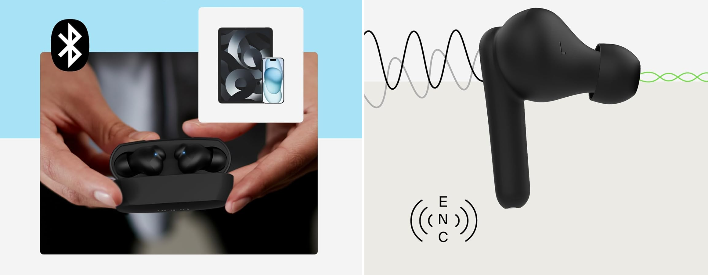 Отримуйте максимум задоволення від кожного дня з Belkin SOUNDFORM Rhythm. Це навушники з функцією Clear Call Quality, яка усуває фоновий шум, багатоточковим з’єднанням Bluetooth 5.3 і 28 год автономної роботи (із зарядним кейсом).