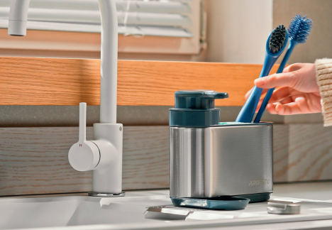 Якщо ж шукаєте максимально компактне рішення для зберігання біля мийки, органайзер для мийних засобів ARHB3102GS – саме те, що треба. За розміру 8 × 12,7 × 16 см він вміщує все необхідне: губку, щітку, пляшку з мийним засобом та дрібні аксесуари. Це вдалий приклад того, як невелика деталь може суттєво вплинути на комфорт і організованість кухонного простору.