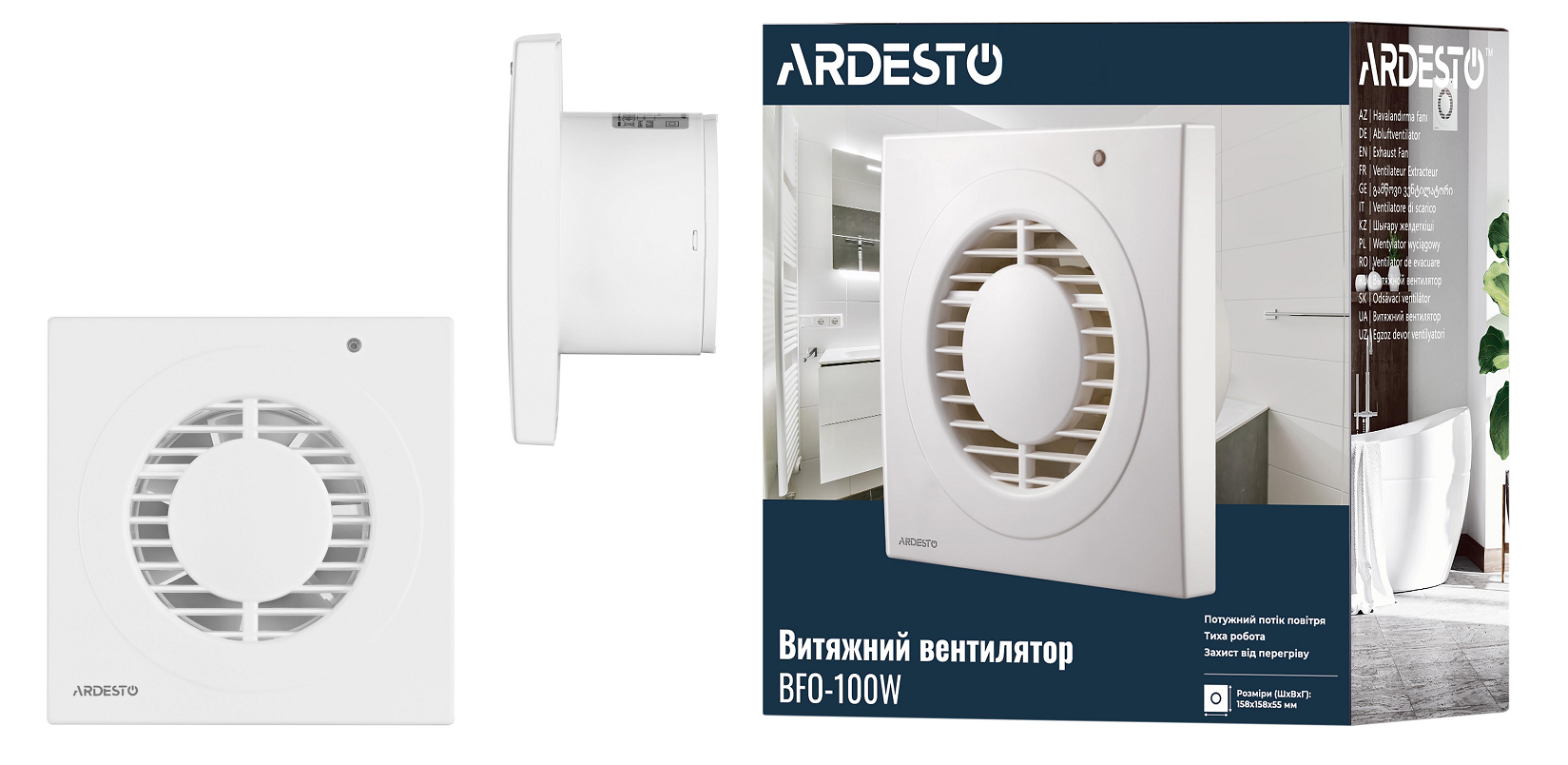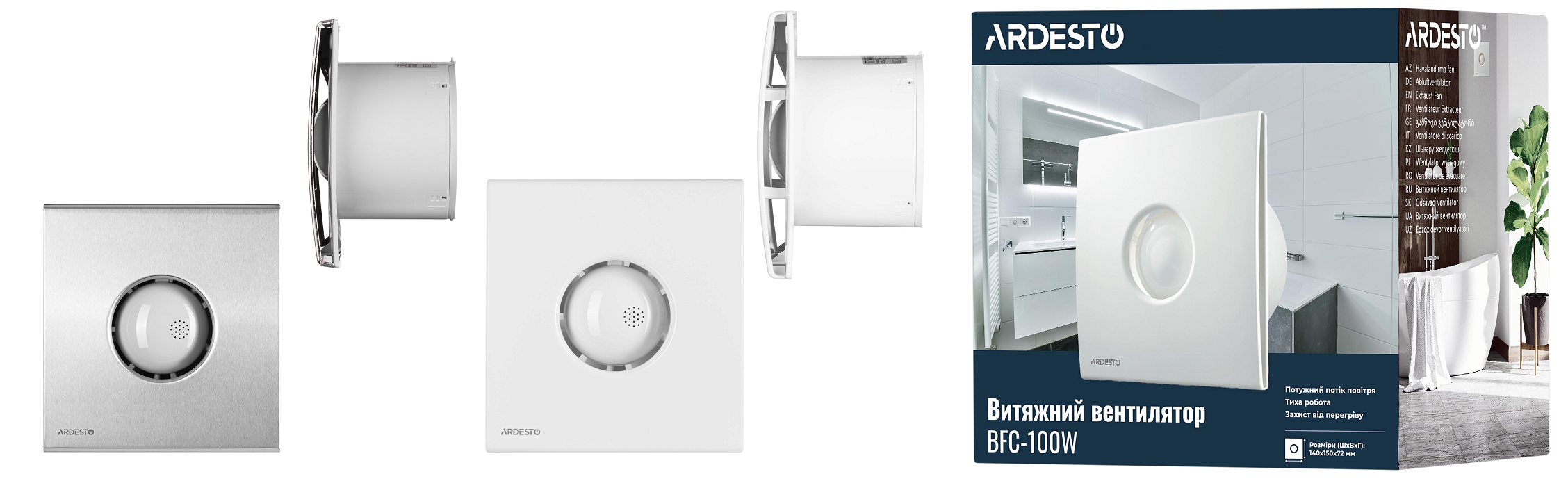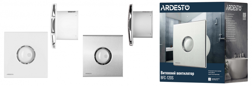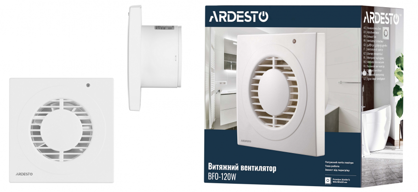 ARDESTO BFC-120W та BFC-120S – ефективні витяжні вентилятори для повітроводів діаметром 120 мм, які згодяться для середніх за розміром ванних кімнат і кухонь.